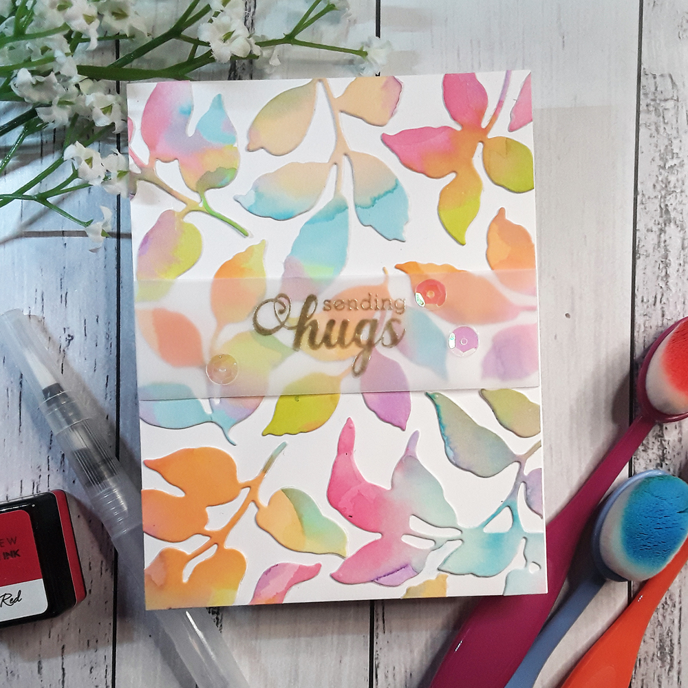 A vellum strip with gold heat embossing for the sentiment added the finishing touches along with a few iridescent sequins.