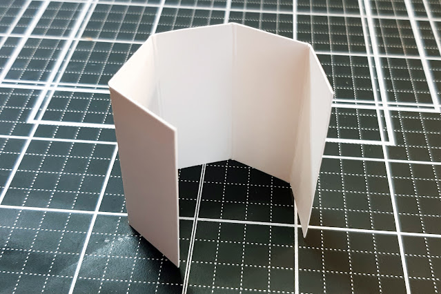 For the pop-up element I cut a piece of scrap cardstock to a rectangle, score it at every 3/4" so that I had 5 sections. I folded and burnished them then adhered the 2 outer sections together to form a hollow square. I adhered this to the join in the inside of the card base.