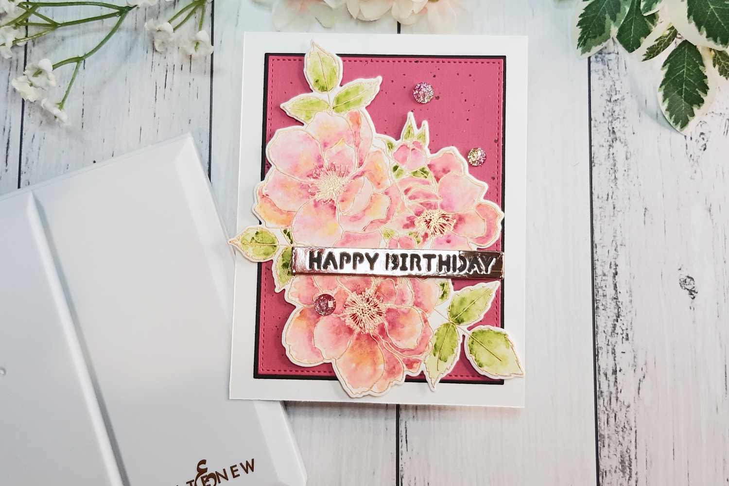 My final card was great fun as I really wanted to try and improve my watercolouring. The class I took was probably my favourite Altenew Academy class. I learned SO much from Erum. Her watercolouring is absolutely amazing and she teaches so well. I was really inspired to try loose watercolouring this time.