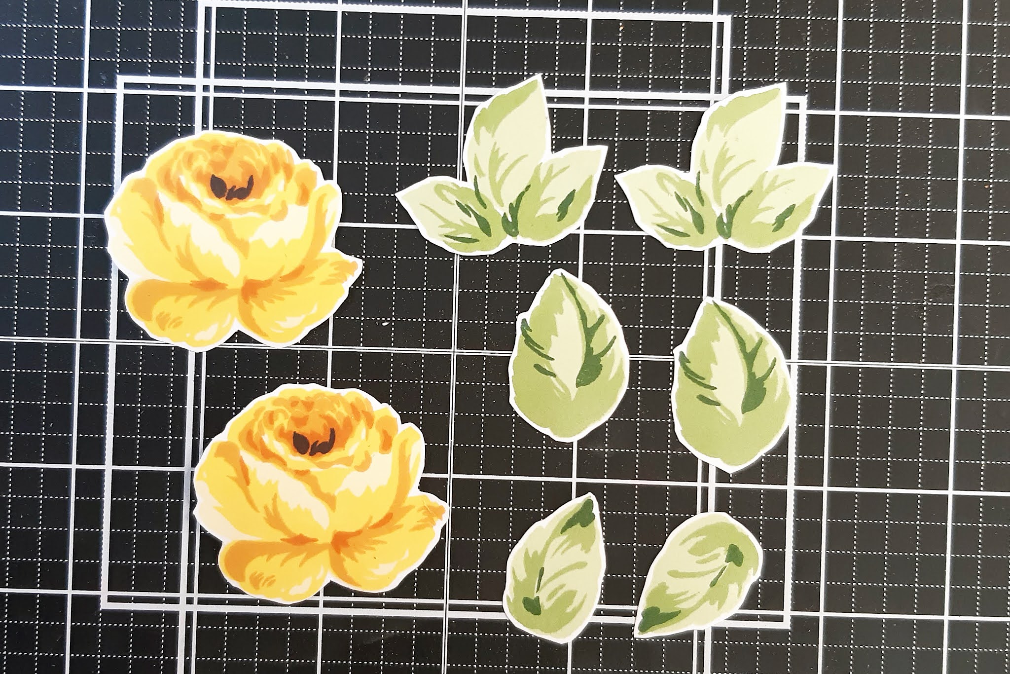 I stamped and cut out 2 flowers and some leaves from the Antique Roses stamp set https://shrsl.com/36osd