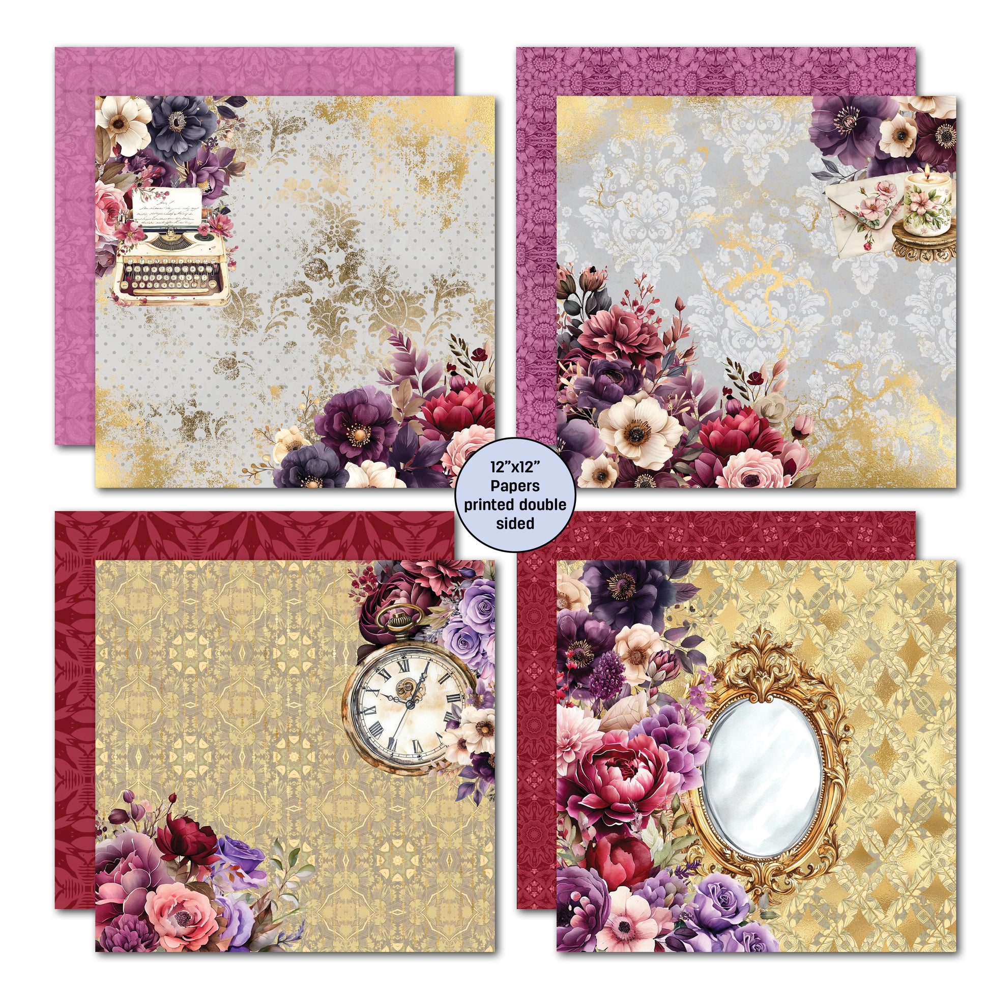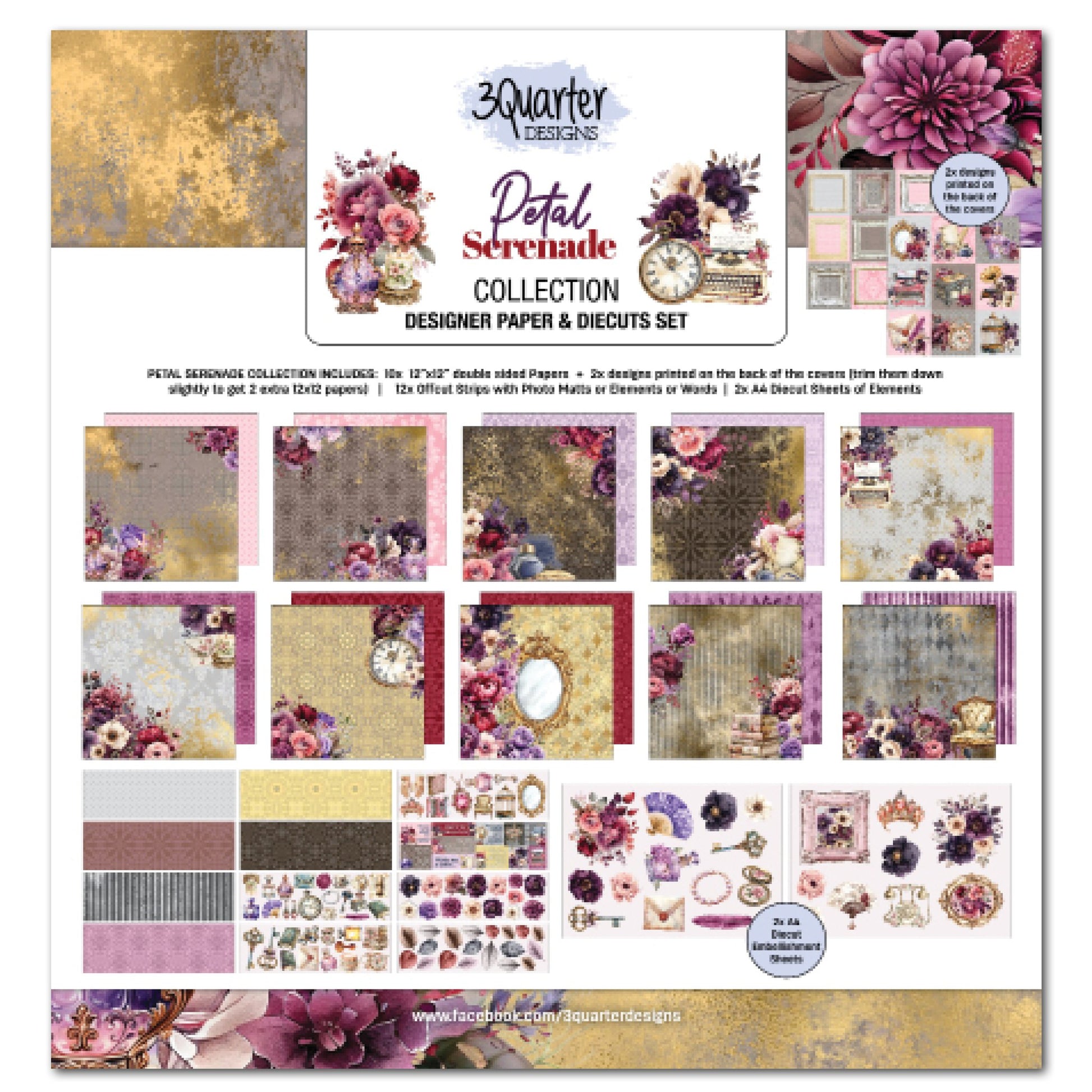 x10 12x12 double sided papers + x2 designs printed on the back of the covers